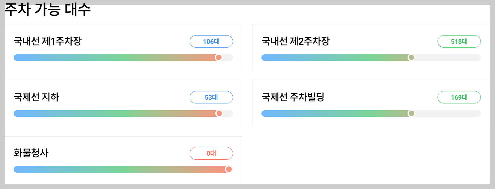 국내선 제1주차장은 공항과 가까워 편리하지만, 만차 되는 경우가 많으니 실시간 주차 대수를 꼭 확인하시길 바랍니다.