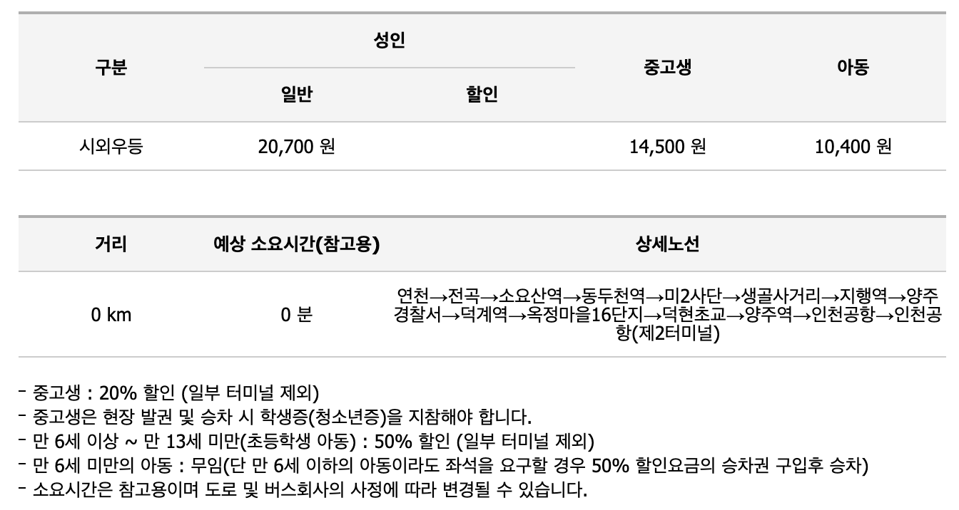 7100 공항버스 예매 시간표 리무진 버스 7100번 예약 (연천터미널 전곡터미널 소요산역 미2사단 지행역 양주경찰서 덕계역 옥정마을 덕현초교 양주역 / 연천터미널~인천공항)