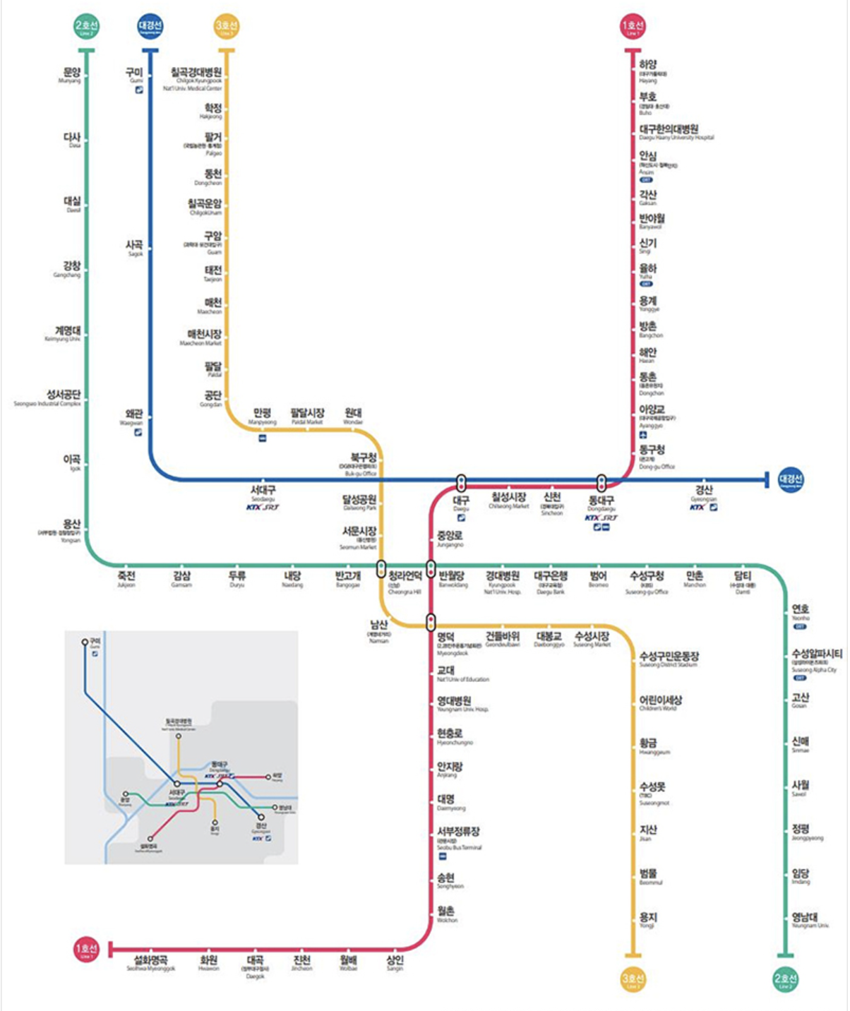 - 대구 : 1호선 환승가능