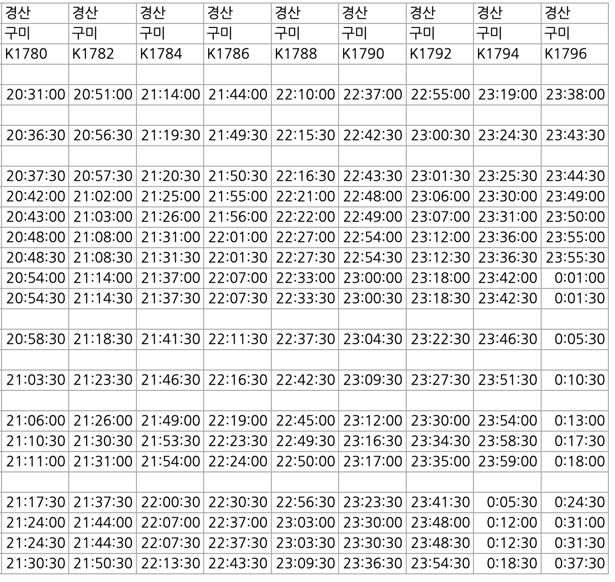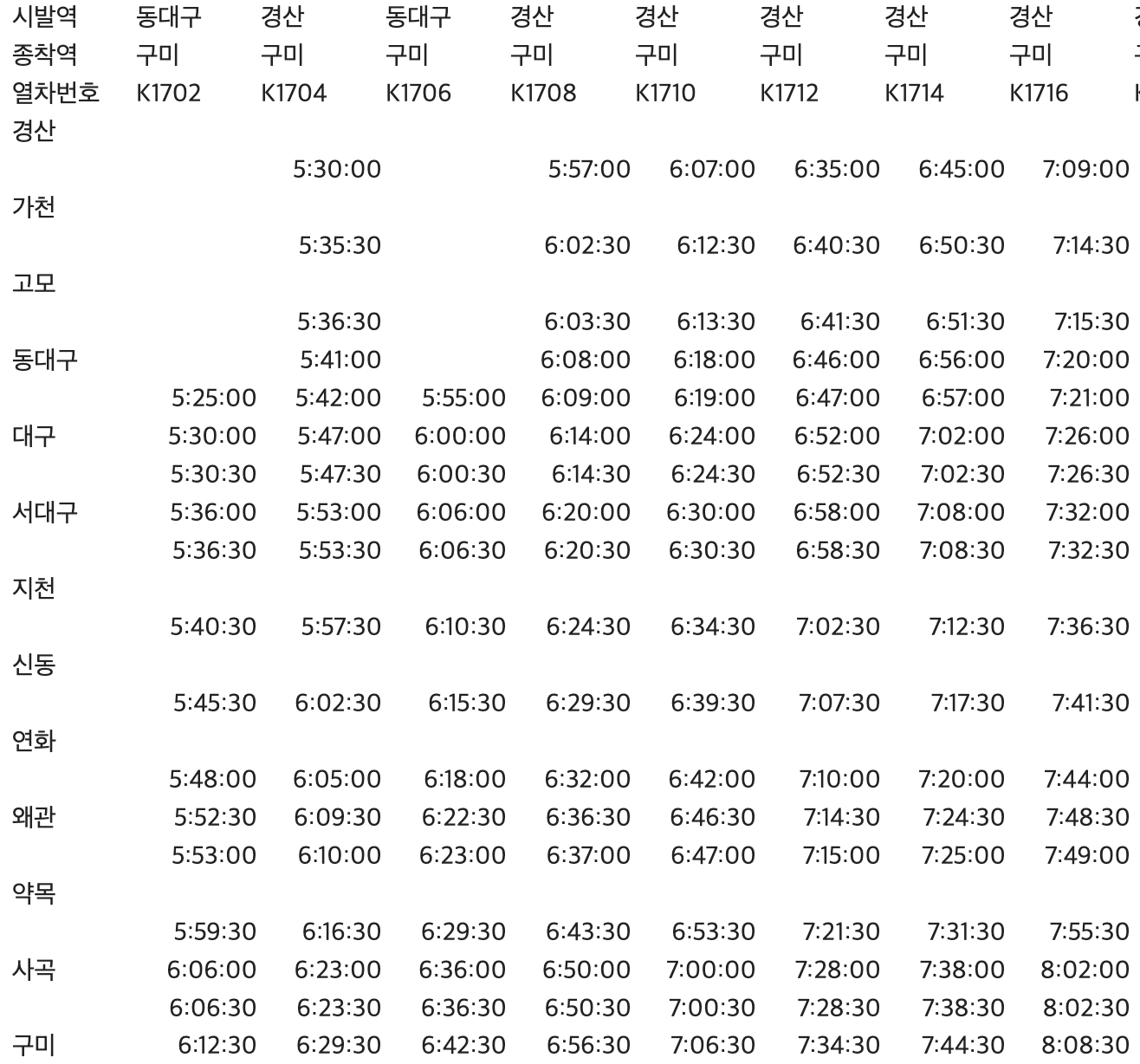 대경선 시간표 조회방법
