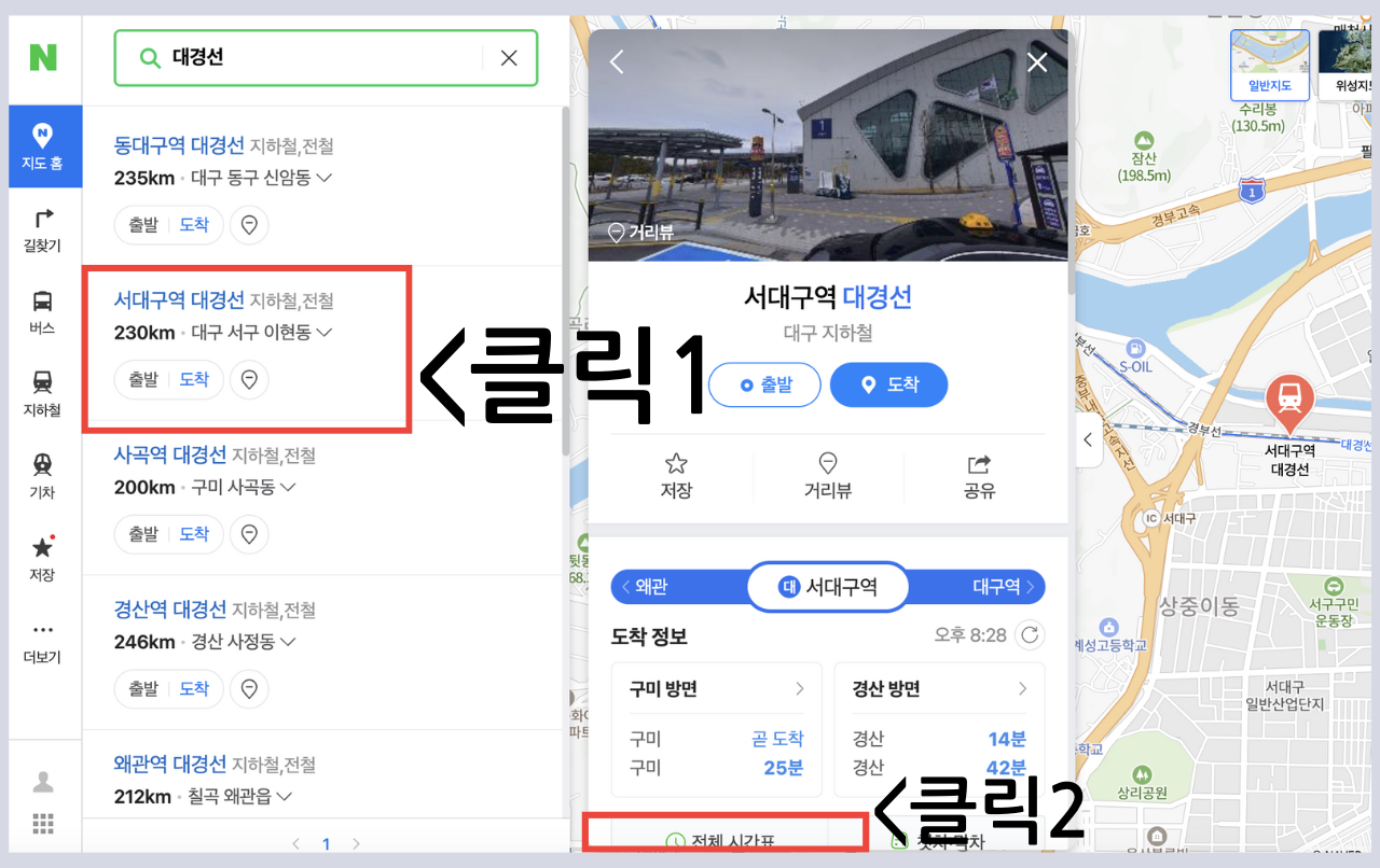 1️⃣대경선 시간표를 버튼을 클릭합니다.