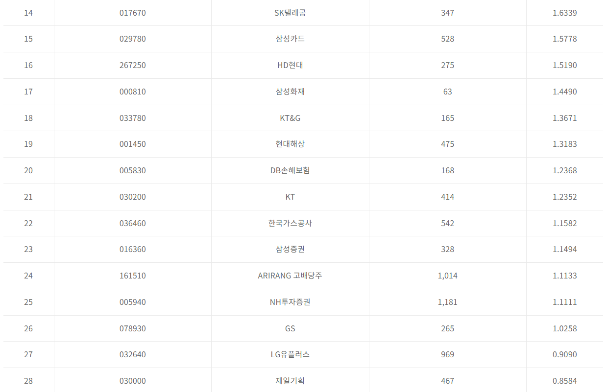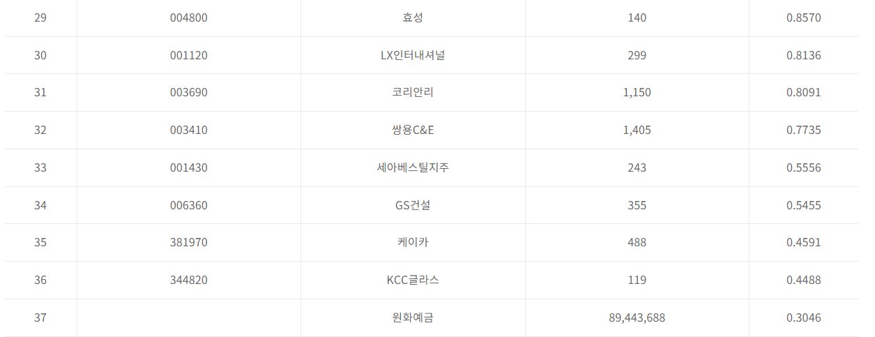 이후 통신사, 건설 등등의 주식을 1%~0.4% 보유하고 있습니다. 2023. 11월 기준이며 기간에 따라 조금씩 상이할 수 있습니다.
