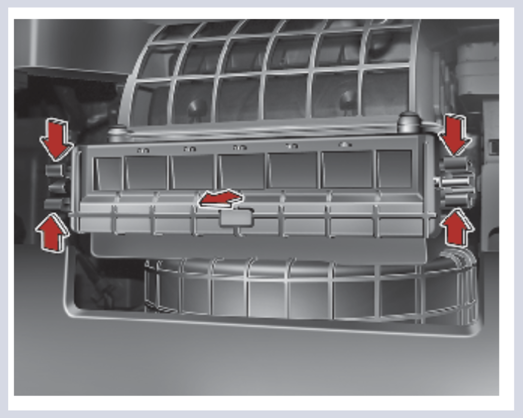 - 공조 장치용 에어필터 받침대 커버의 양 끝을 누른 상태에서 잡아당겨 빼내세요.