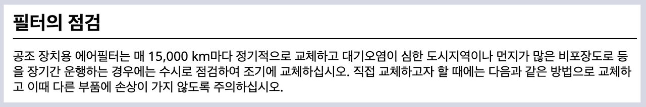 공식 사용 설명서에 따르면 레이 에어컨 필터 일반 교체주기는 15,000km 마다입니다.