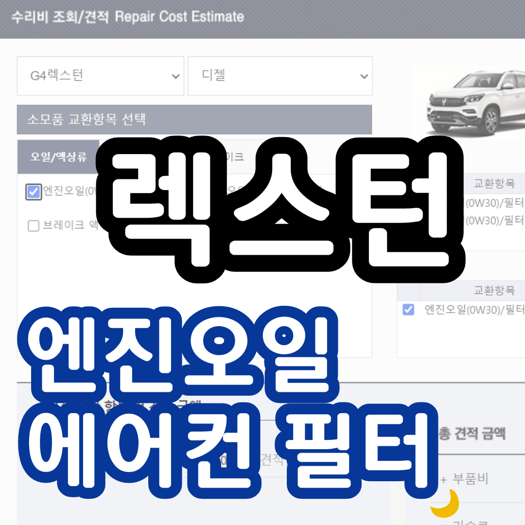 렉스턴 엔진오일 SET 교환 비용(113000원)