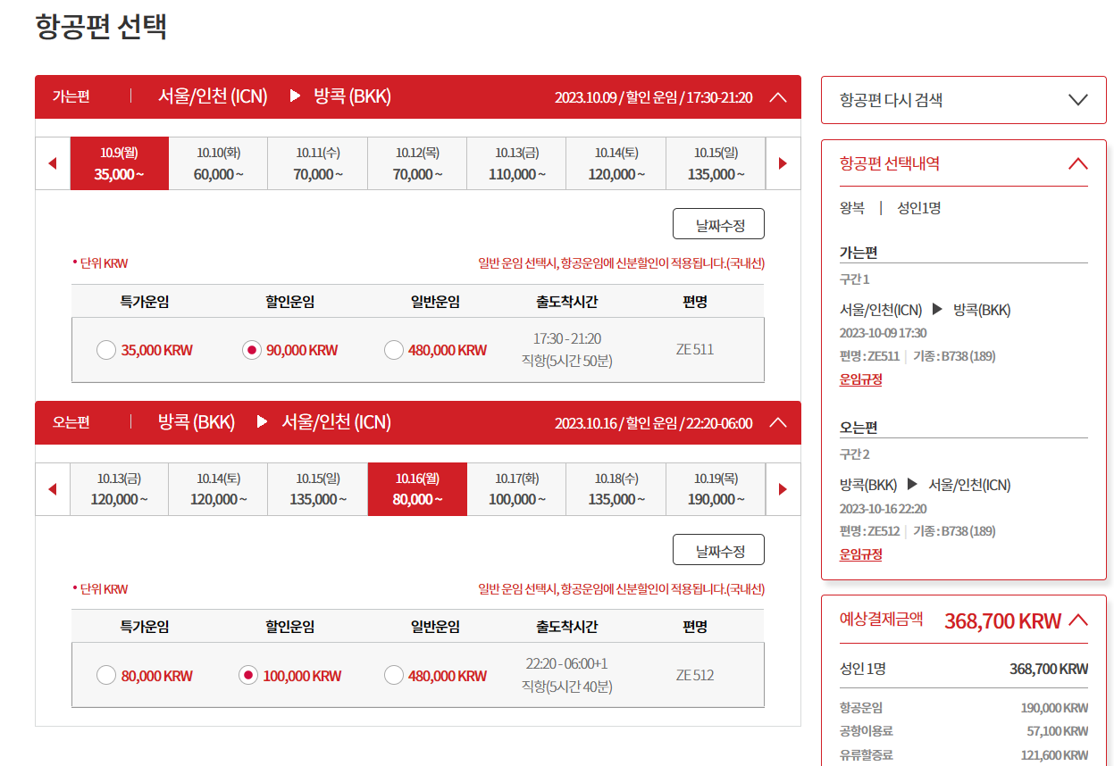 항공 운임, 운항 스케줄, 부가서비스 안내 및 국내/외 항공편 예약 서비스 제공