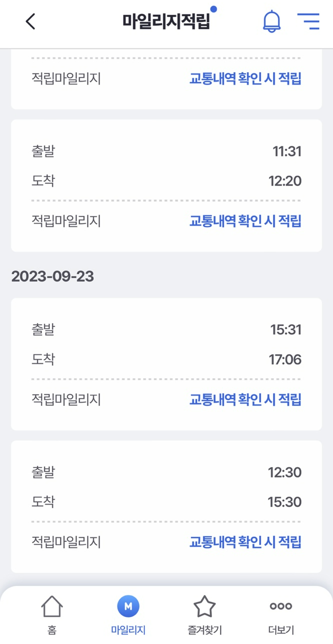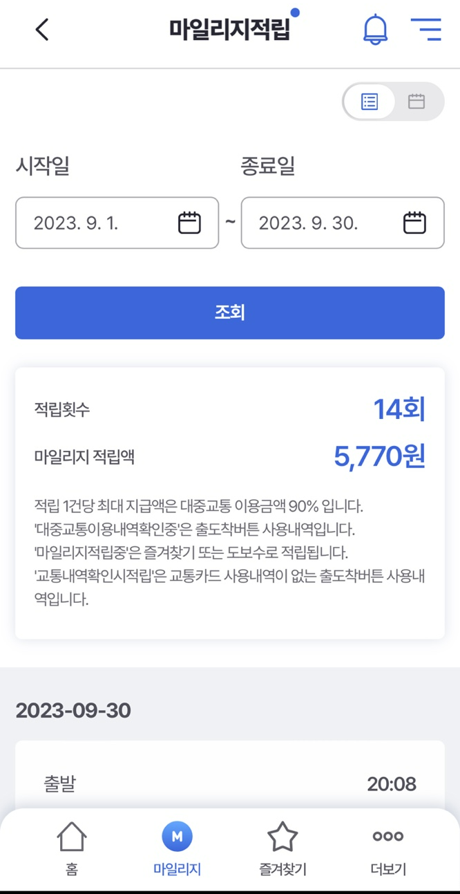 9월 12일 부터는 아직 교통내역 확인 시 적립으로 나타나 총 합계는 아닙니다. 예상으로 한달에 대략 1만원 정도 절약 할 수 있겠네요. 그리고 1회 적립 금액은 350원에서 500원 정도니 참고 바랍니다.