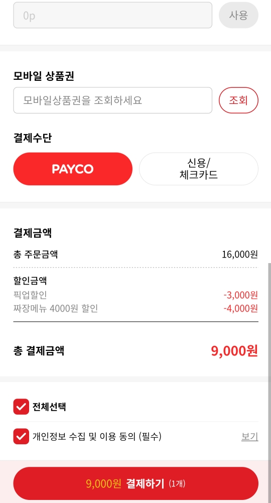 먼저 엽기떡볶이 어플을 설치하고 회원가입을 한다. 후에 로그인하여 쿠폰을 다운로드한다. 주변 매장을 검색한 후 픽업> 주문하기를 누른다. 짜장 떡볶이 메뉴를 클릭한다.(짜장 오리지널, 반반, 어묵 가능 3000원 추가 시 분모자로 변경 가능)