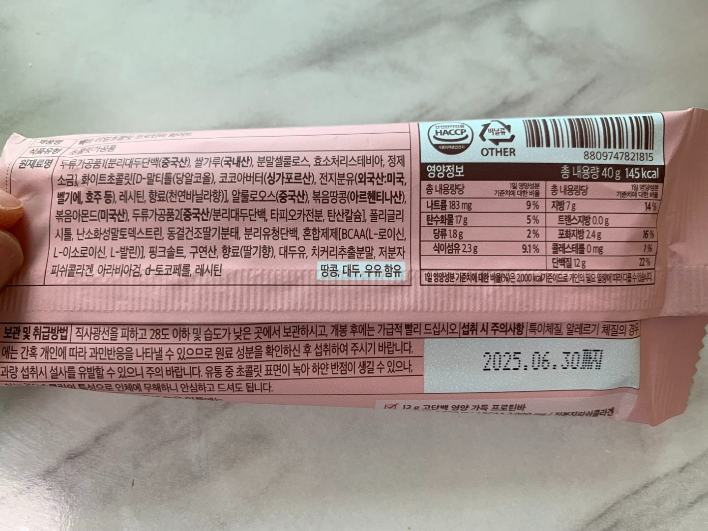 성분이 물론 다른 간식보다는 너무 좋지만 분리대두단백과 알룰로오스가 중국산인 게 먹을 때마다 마음에 조금 걸려요. 그렇지만 저는 앞으로도 쭉 먹을 생각이니 빼바 담당자님께서 제 글을 보시고 추후 리뉴얼 때 의견을 반영 부탁드립니다.