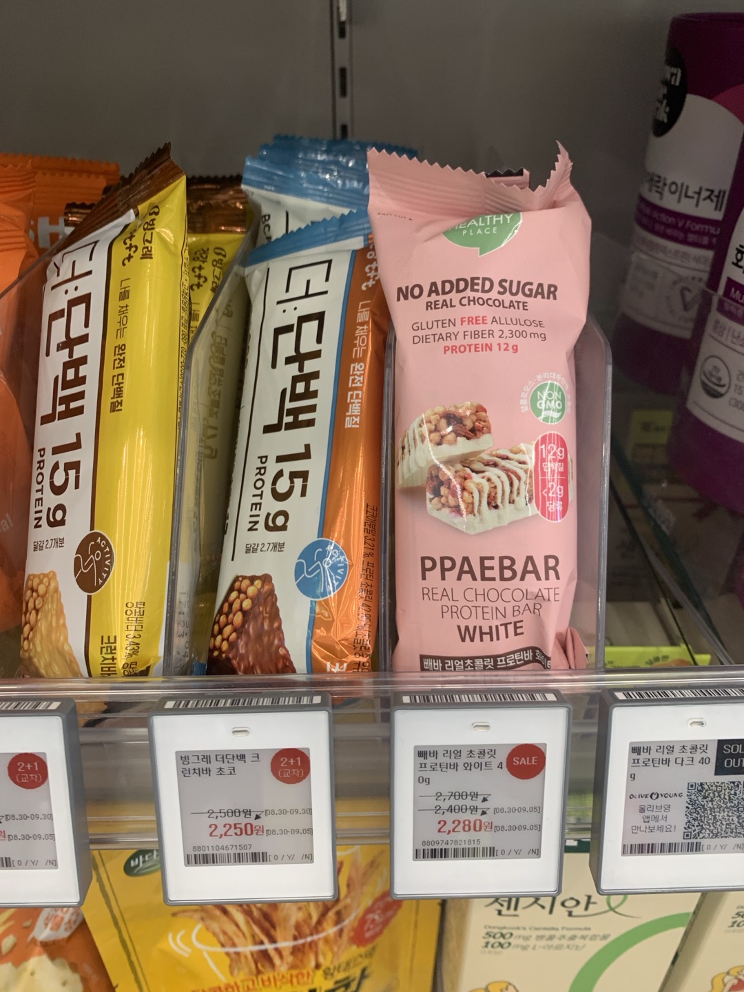 오늘올리브영에 갔는데 빼바 리얼 초콜릿 프로틴바 화이트가 1개밖에 남아있지 않아서 '내일은 못 사먹을도 있겠다..!' 하는 생각을 했어요. 어제까지만 해도 5-6개 있었는데 분명 어제저녁에 누가 사재기로 많이 사간게 분명합니다.