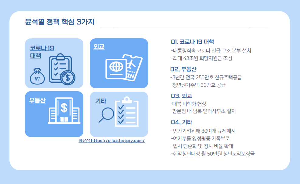 우리나라 20대 대통령으로 국민의 힘 윤석렬 후보가 당선됐다. 당선인에게 주어진 과제는 앞으로 그가 내세운 주요 공약들을 여러 변수와 상황을 고려하며 시행해 나가는 것이다.