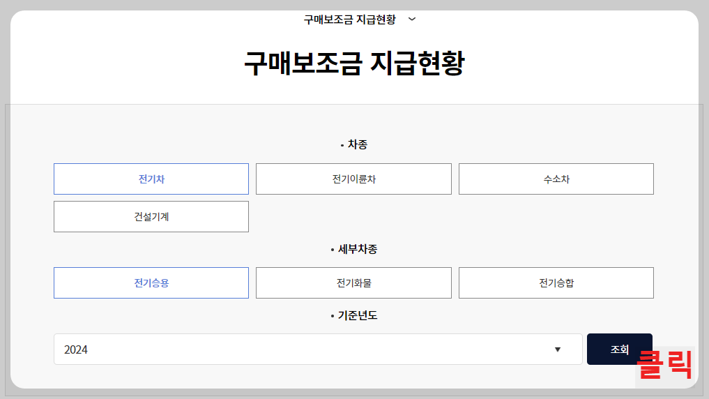 지역별, 차종별로 전기차 보조금의 잔여 대수를 조회할 수 있습니다.