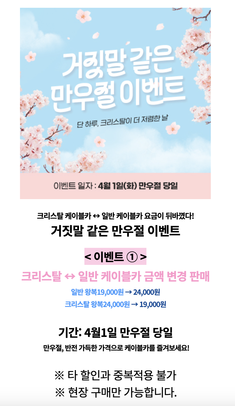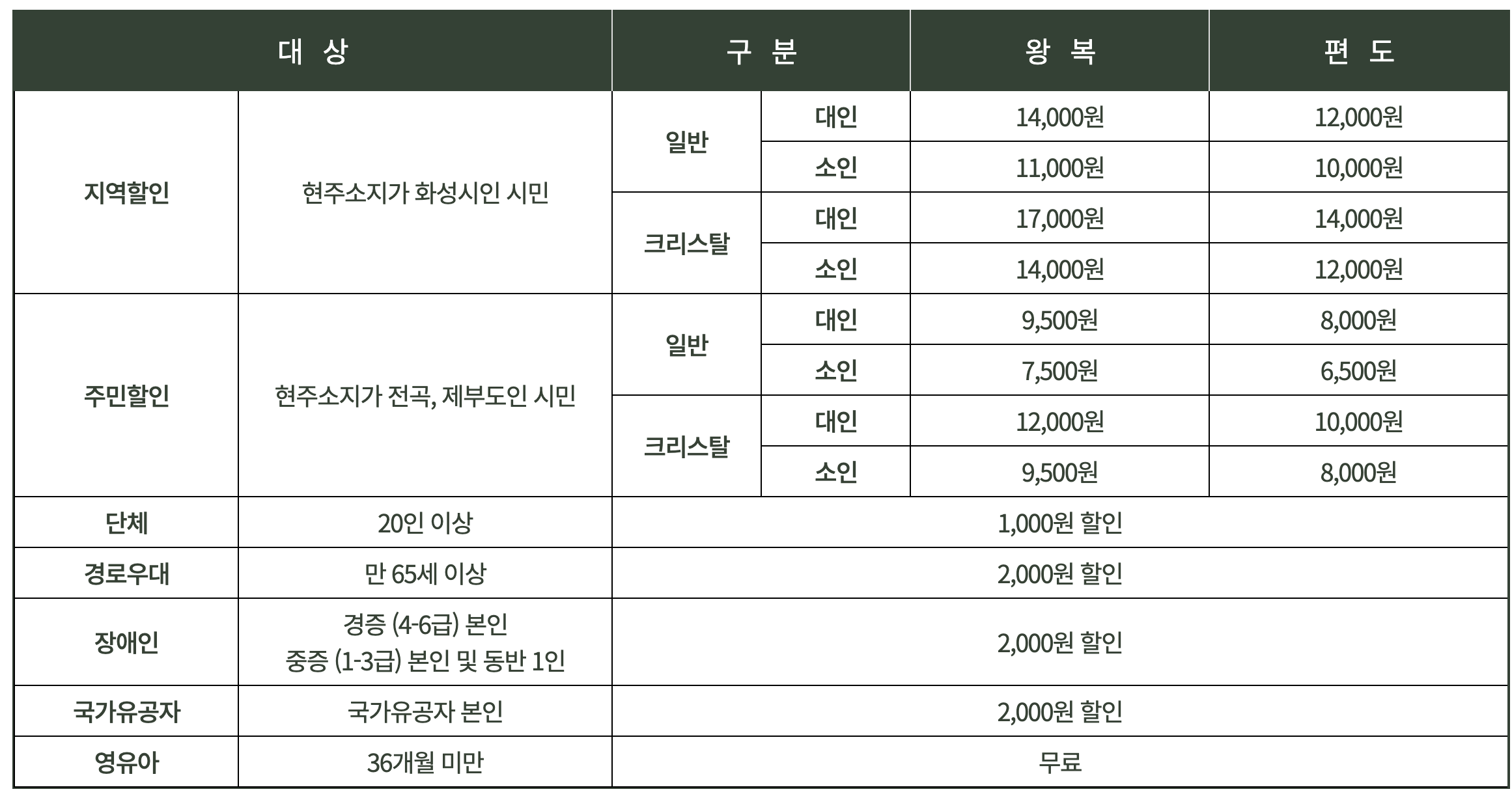 - 크리스탈 캐빈: 성인 24,000원 / 어린이 18,000원