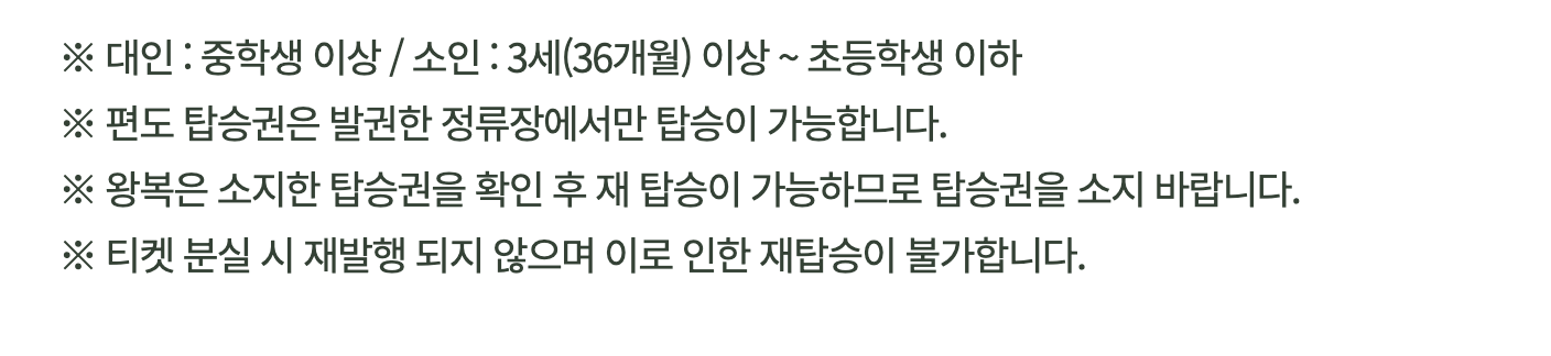 - 왕복 일반 캐빈: 성인 19,000원 / 어린이 14,000원