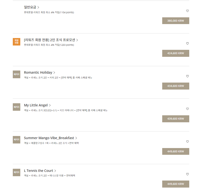 위의 롯데 호텔 가격표를 보시면 롯데 위워즈 회원전용 요금이 따로 있는데요.
