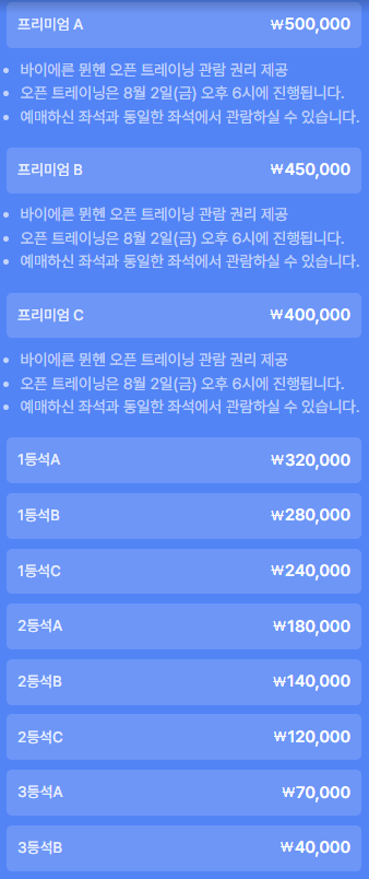 오픈 트레이닝의 경우 프리미엄 A, B, C 의경우 무료 관람 권리를 제공합니다. 이에 대해 더욱 궁금한 점은 아래 글에서 확인하실 수 있습니다.