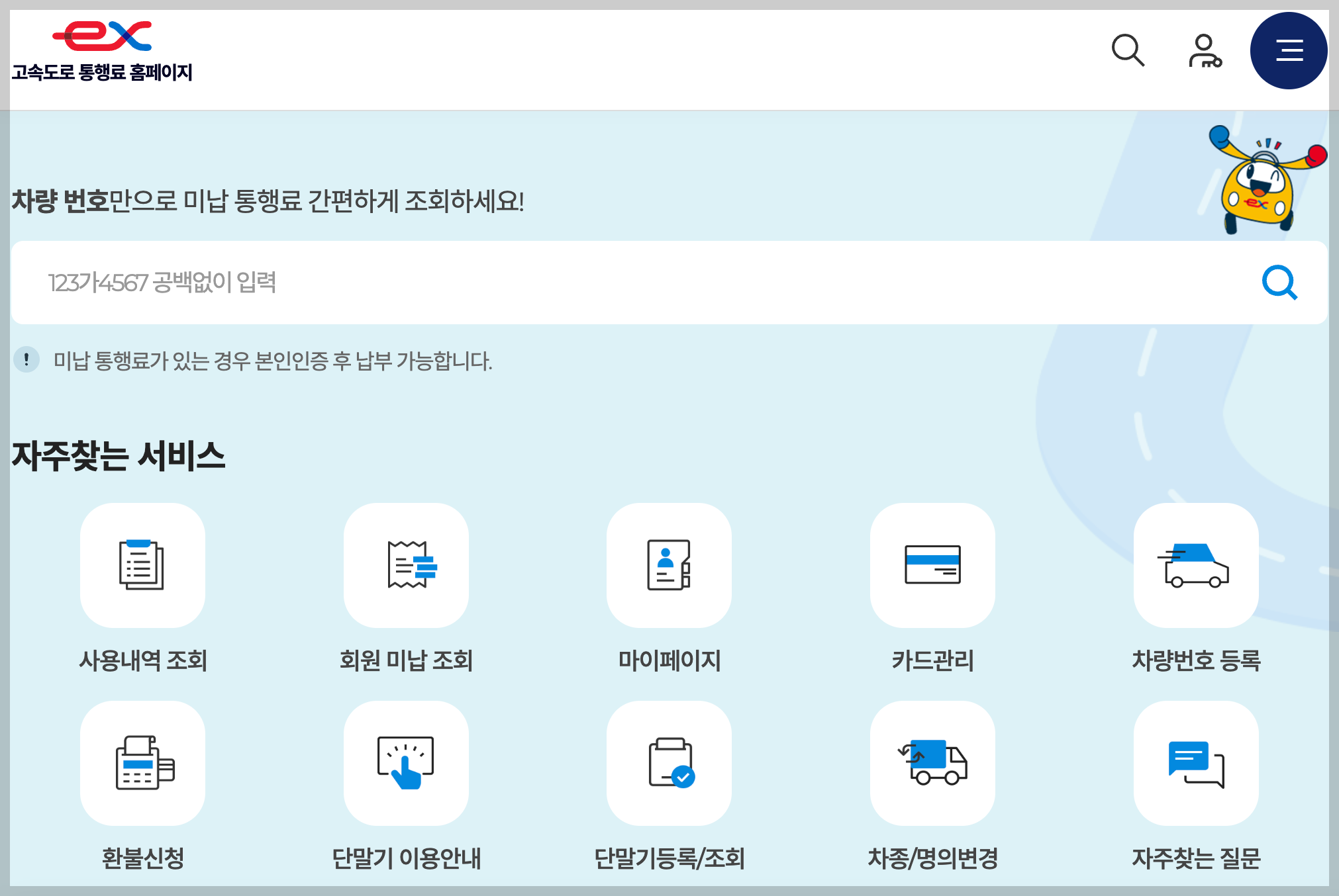 → 차량 소유자의 본인 인증 또는 위임 절차를 거쳐야 합니다. - Q. 미납요금은 나중에 자동으로 빠져나가나요?