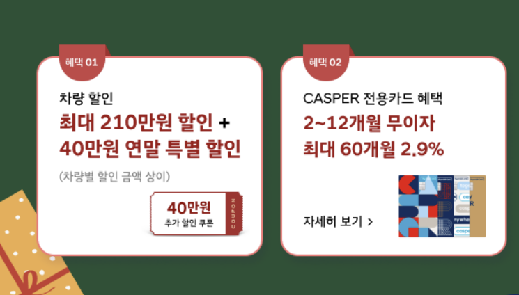 캐스퍼 크리스마스 선물 이벤트 최대 250만 원 할인
