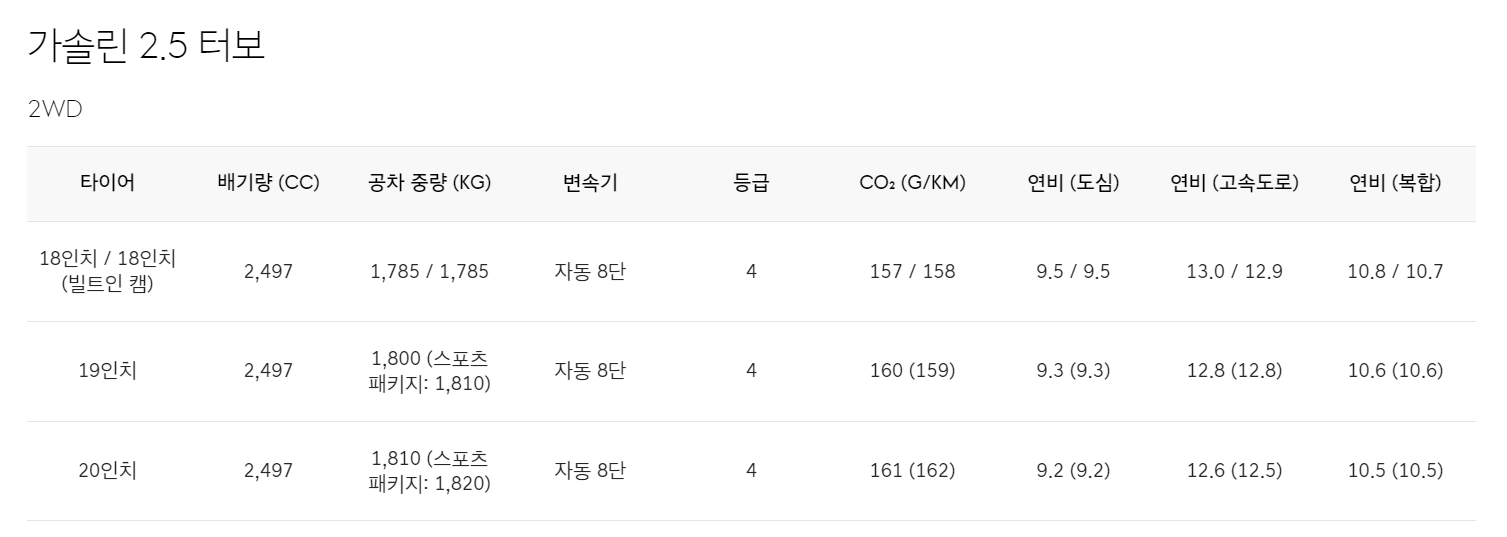 | 가솔린 모델 | 2.5L, 3.5L | 트윈터보 엔진 |