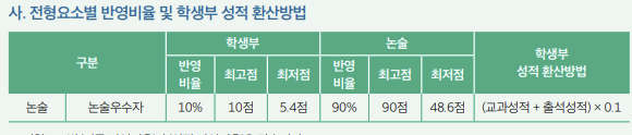 학생부 반영비율 10% : 최고점 10점, 최저점 5.4점