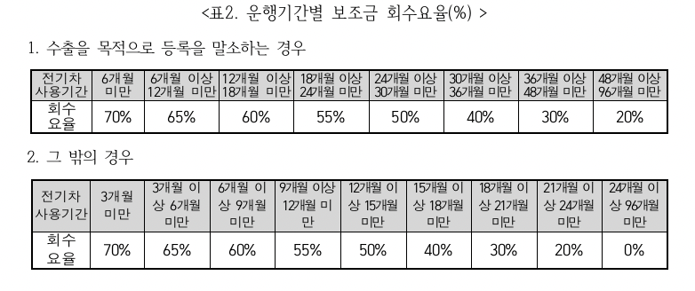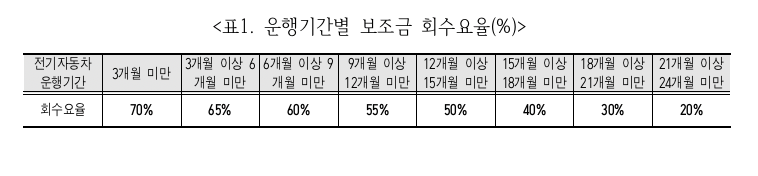 - 전기화물차는 2년간 2만km 미만 운행 후 판매 시 30% 이상 환수