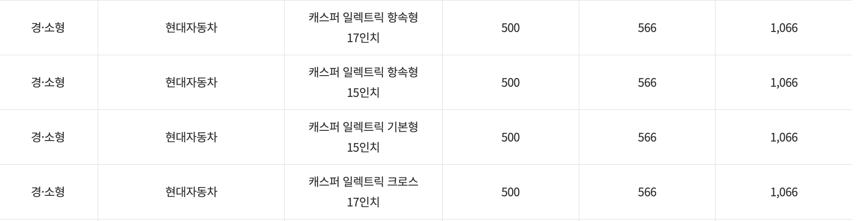 아래에서는 캐스퍼 전기차뿐만 아니라 각 차종의 보조금 금액 확인 가능합니다.