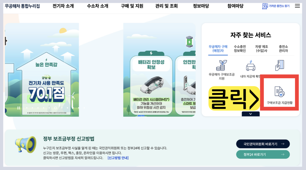 1️⃣ 환경부 무공해차 통합 누리집(ev.or.kr) 구매 보조금 지급현황 클릭