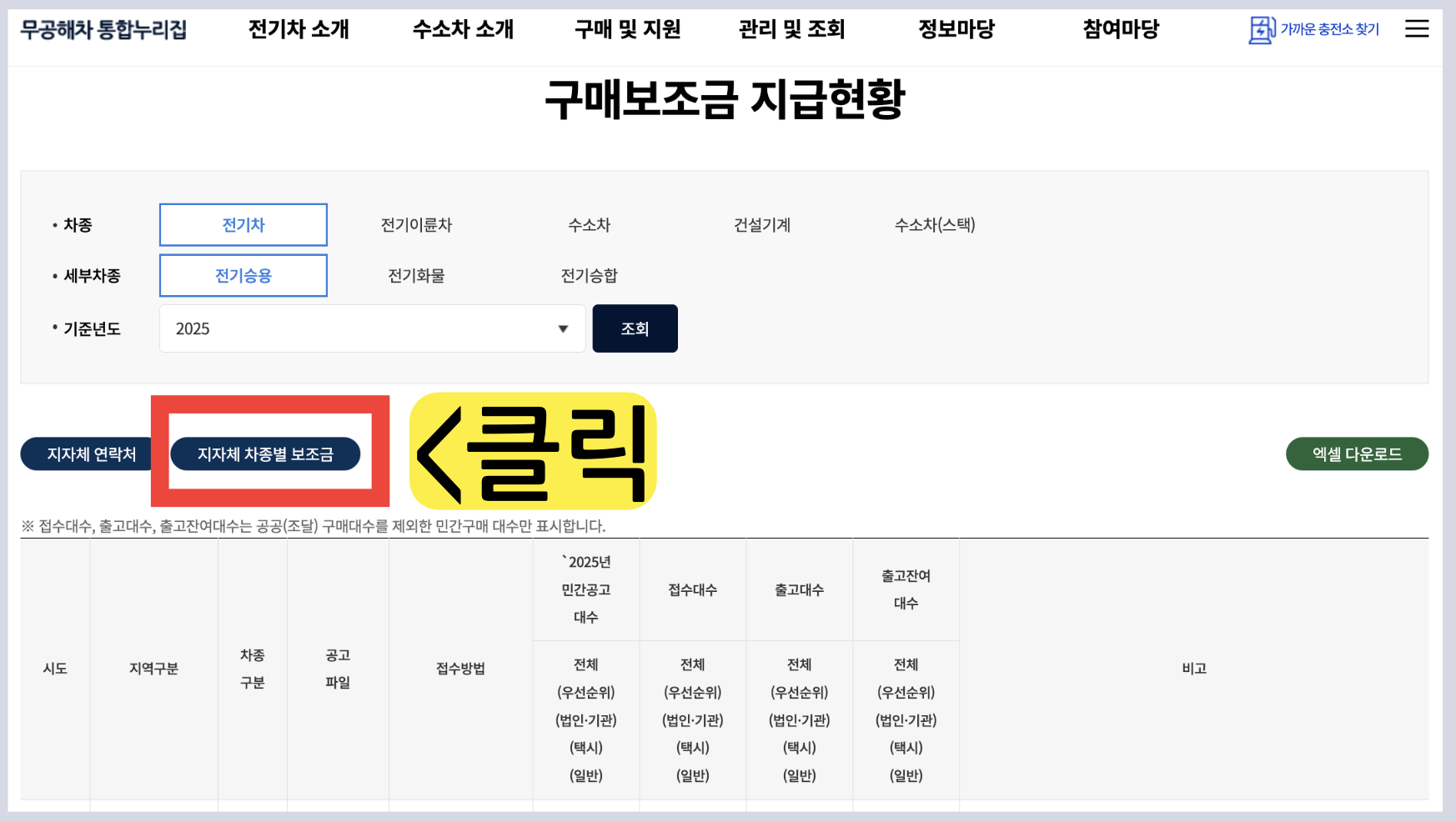 2️⃣ 지자체 차종별 보조금 클릭