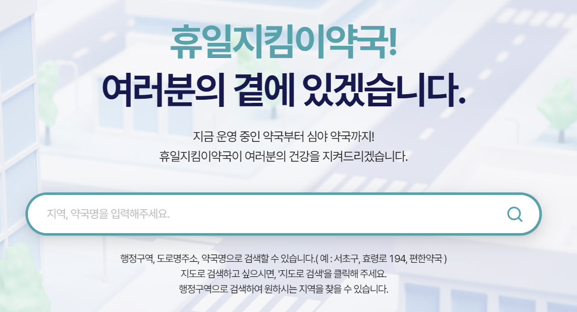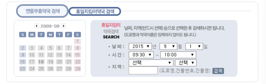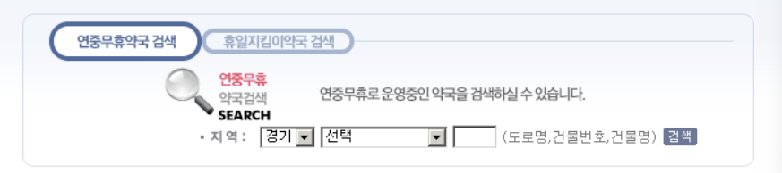 1) 연중무휴 약국 검색(실시간 휴일지킴이약국 검색)