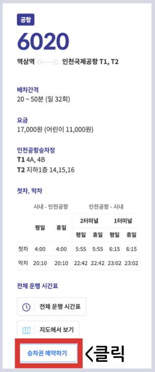 6020 공항버스 이용 시 사전 예매 가능합니다.