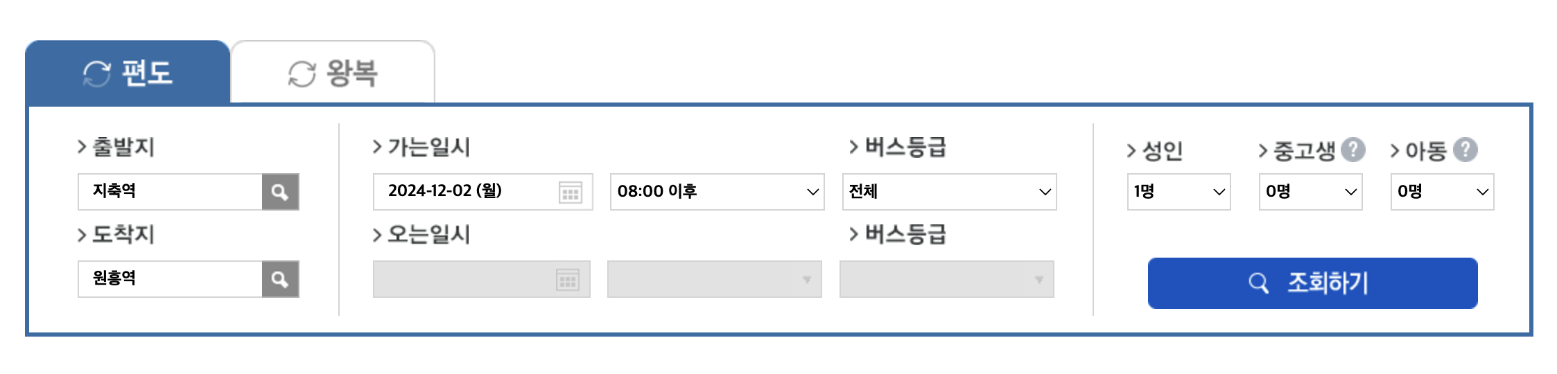 3️⃣버스 탑승 날짜를 선택 후 조회하기를 클릭합니다.