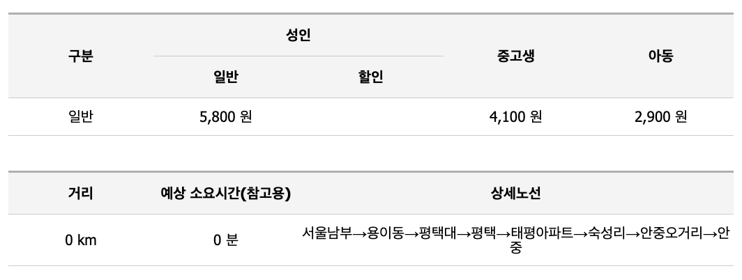 | 전 구간 | 5,800원 | 4,100원 | 2,900원 |