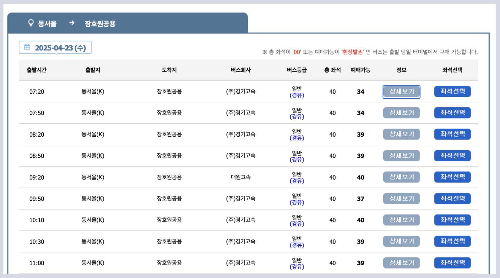 정확한 정보는 예매 전 반드시 GBIS 공식 사이트 또는 터미널에 확인 바랍니다.