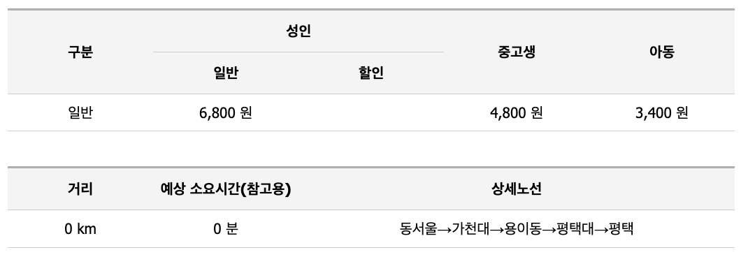 | 전 구간 | 6,800원 | 4,800원 | 3,400원 |