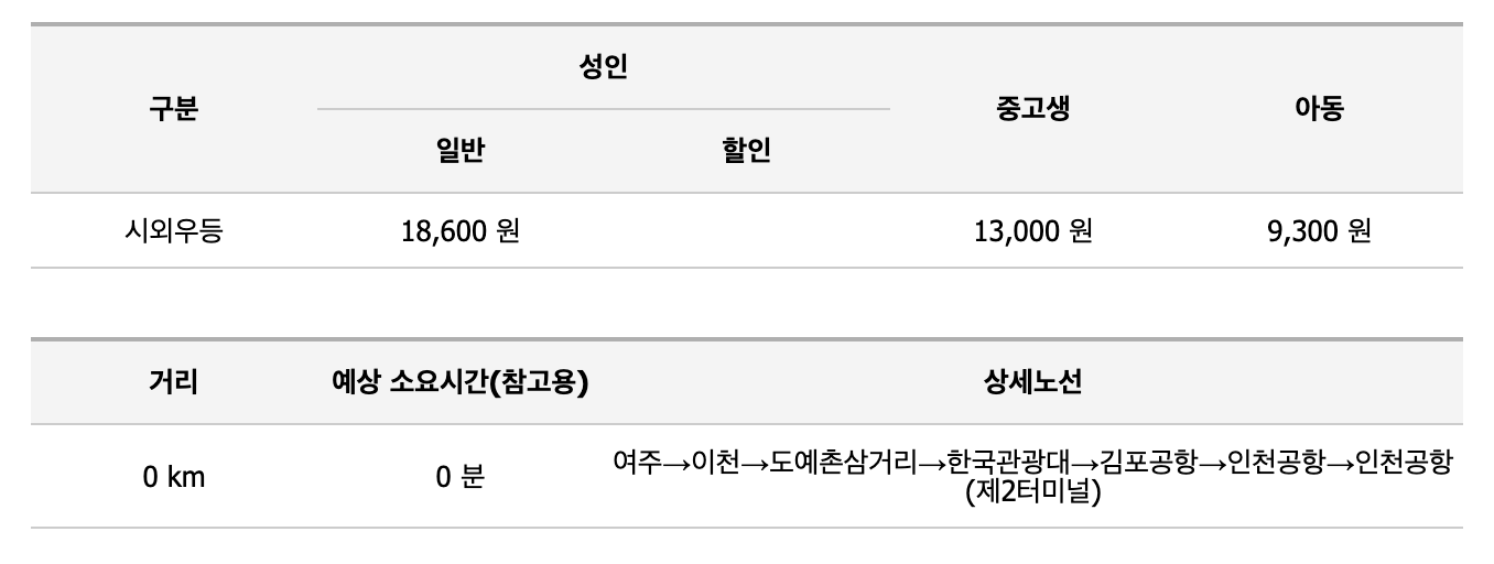 | 여주 터미널 | 18,600원 | 25,400원 |