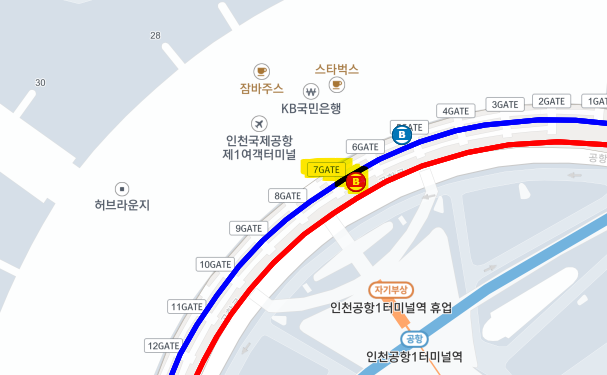 - 제1여객터미널(T1): 1층 7번게이트 앞