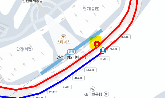 - 제2여객터미널(T2): 지하 1층 6번 게이트 앞