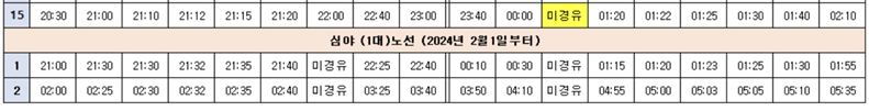 - 도로사정에 따라 운행시간표 달라질 수 있으며, 상기 시간 최소 3~5분 전에 대기하시면 좋습니다.