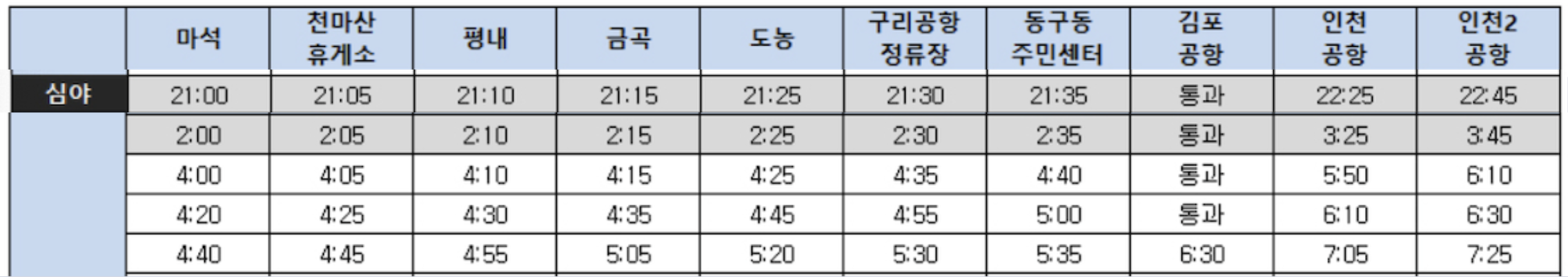 | 인천공항 제2터미널 | 00:10 | 3:50 |