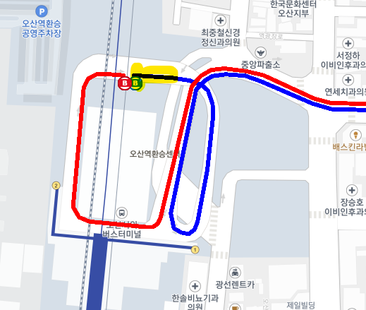 - 오산역환승센터: 오산역환승센터 2층 (정류장번호 24371)