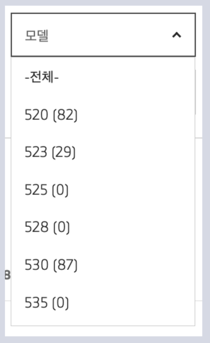 *예시로 5시리즈 선택>530 선택> 55000km 선택