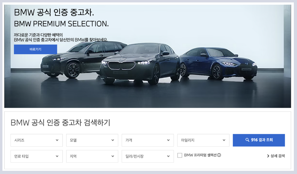 BMW 공식 중고차 홈페이지에서 중고차 구매뿐만 아니라