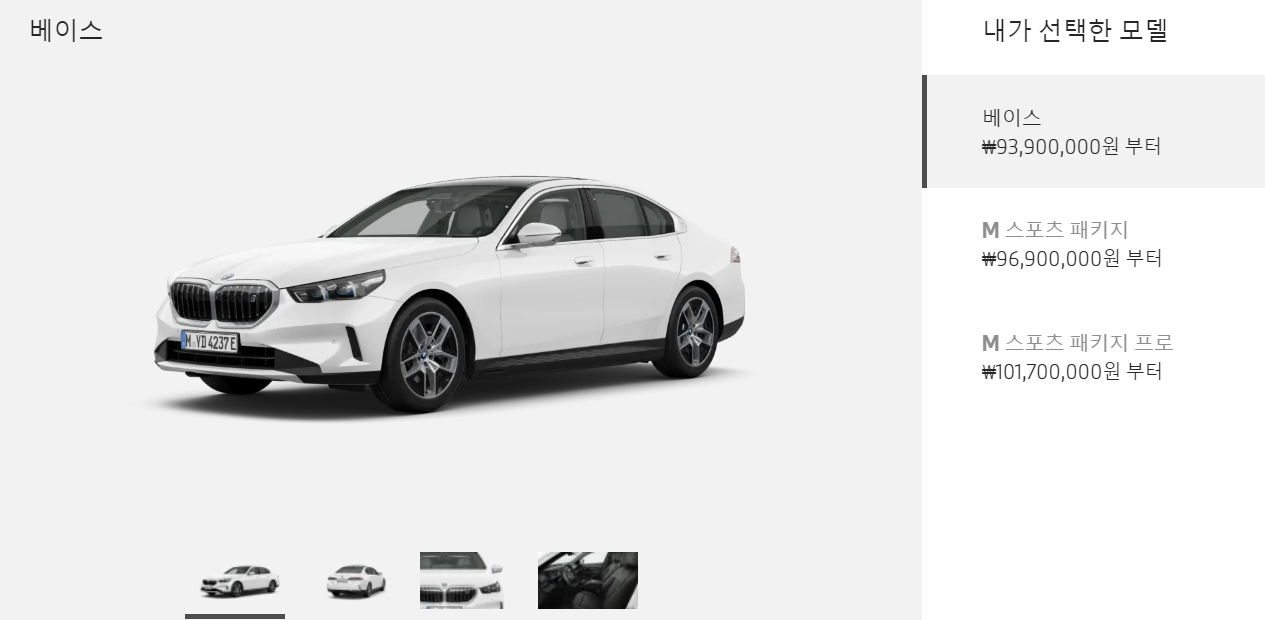 위의 사진에서 보는 것 같이 BMW 5시리즈 i5 9390만원 부터 시작됩니다. i5 M60 의 경우에는 13890 만원 입니다.