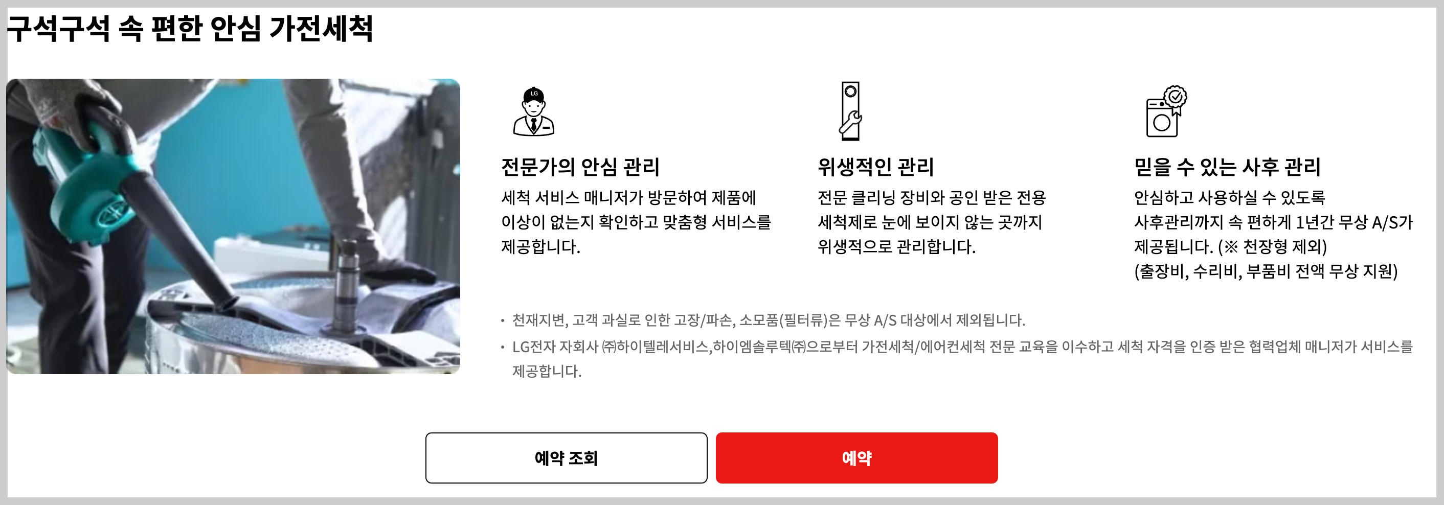 아래 버튼을 누르면 LG 공식 홈페이지 청소 예약 페이지로 이동합니다.