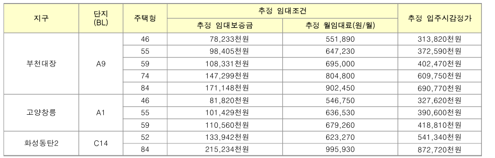 - 84㎡: 임대보증금 215,234천 원, 월 임대료 995,930원