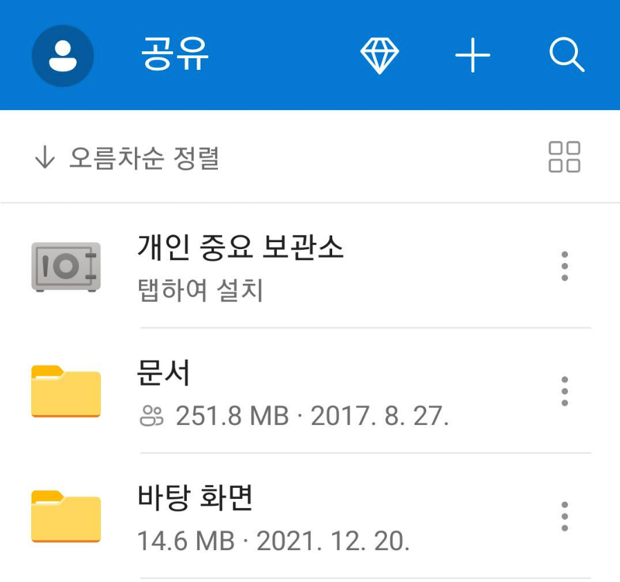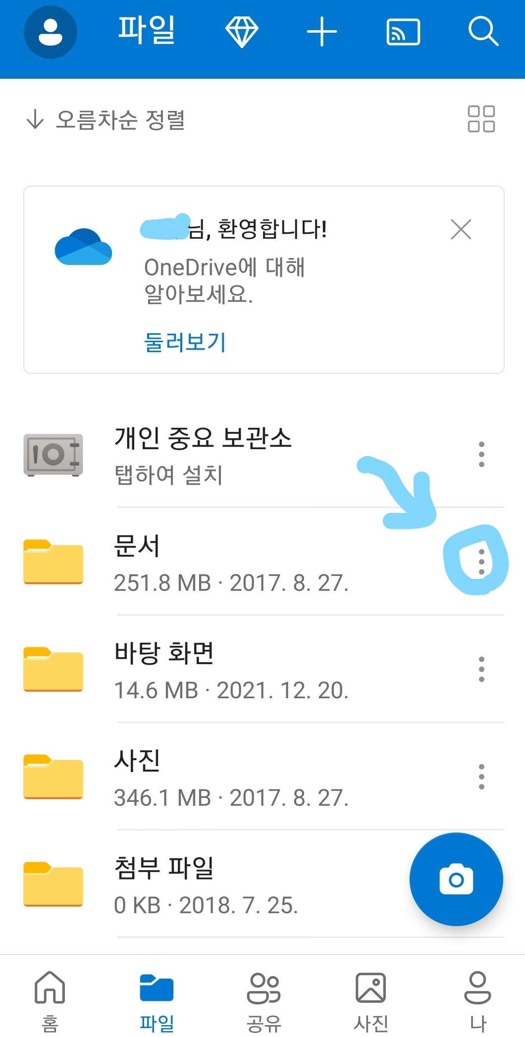 OneDrive앱을 통해 핸드폰에서 파일고 공유할 수 있다. 먼저 핸드폰에 OneDrive어플을 다운받고 로그인을 한다.